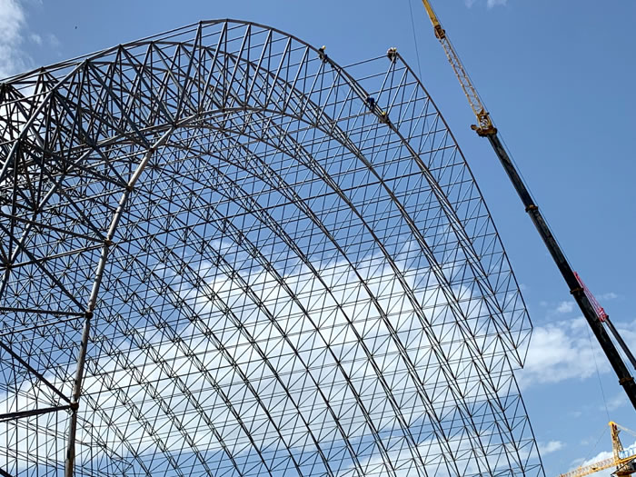(2)网架加工前应对现场尺寸进行复测,确认无误后方可进行加工、安装;网架制作、运输、安装应遵守《空间网格结构技术规程》JGJ7-2010、《钢网架林州螺栓球节点》JG/T 10-2009、《钢网架林州螺栓球节点用高强度螺栓》 GB/T 16939-2016、《林州钢结构林州工程林州施工规范》 GB50755-2012、《林州钢结构林州工程林州施工质量验收标准》 GB50205-2020。